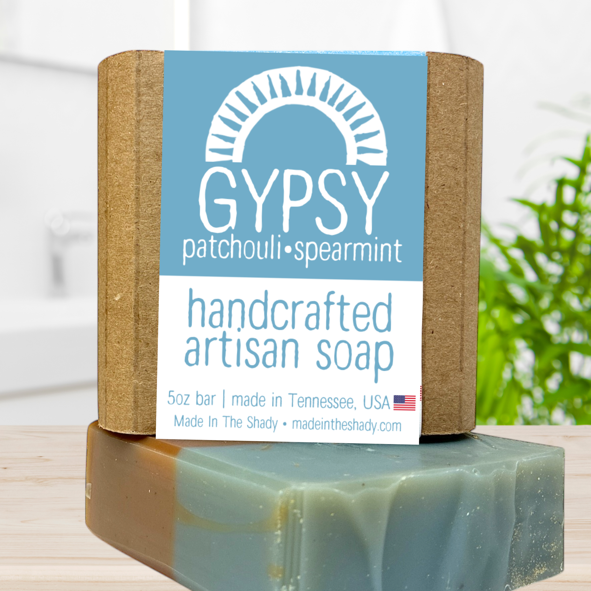 GYPSY: Patchouli+MintHandcrafted with Coconut Oil, Extra Virgin Olive Oil, Castor Oil*, Cocoa*, Mica, Cornflower Petals, Essential oil Blend