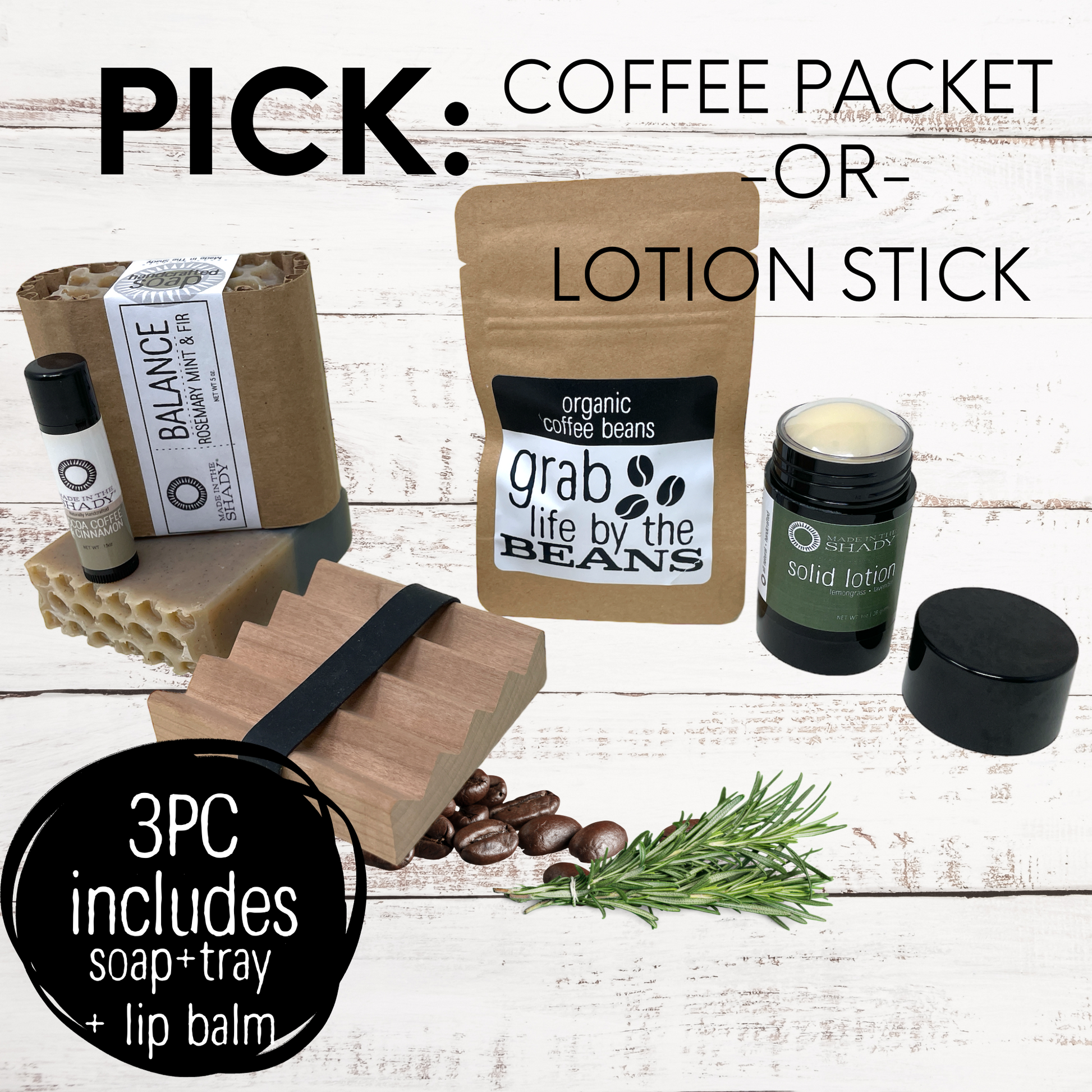 Pick 1 x Organic Solid Lotion (1oz) - OR - 1 x Organic Coffee Beans (0.75oz)