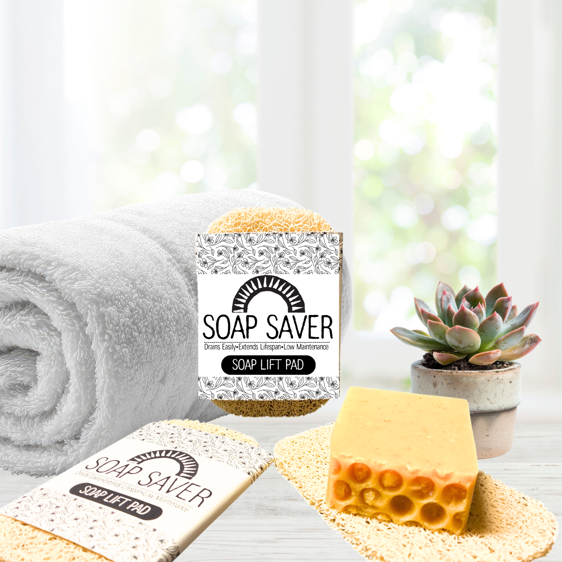 Extend the life of your favorite soap with our Soap Saver Lift Pad, designed to keep your bar dry, fresh, and long-lasting.