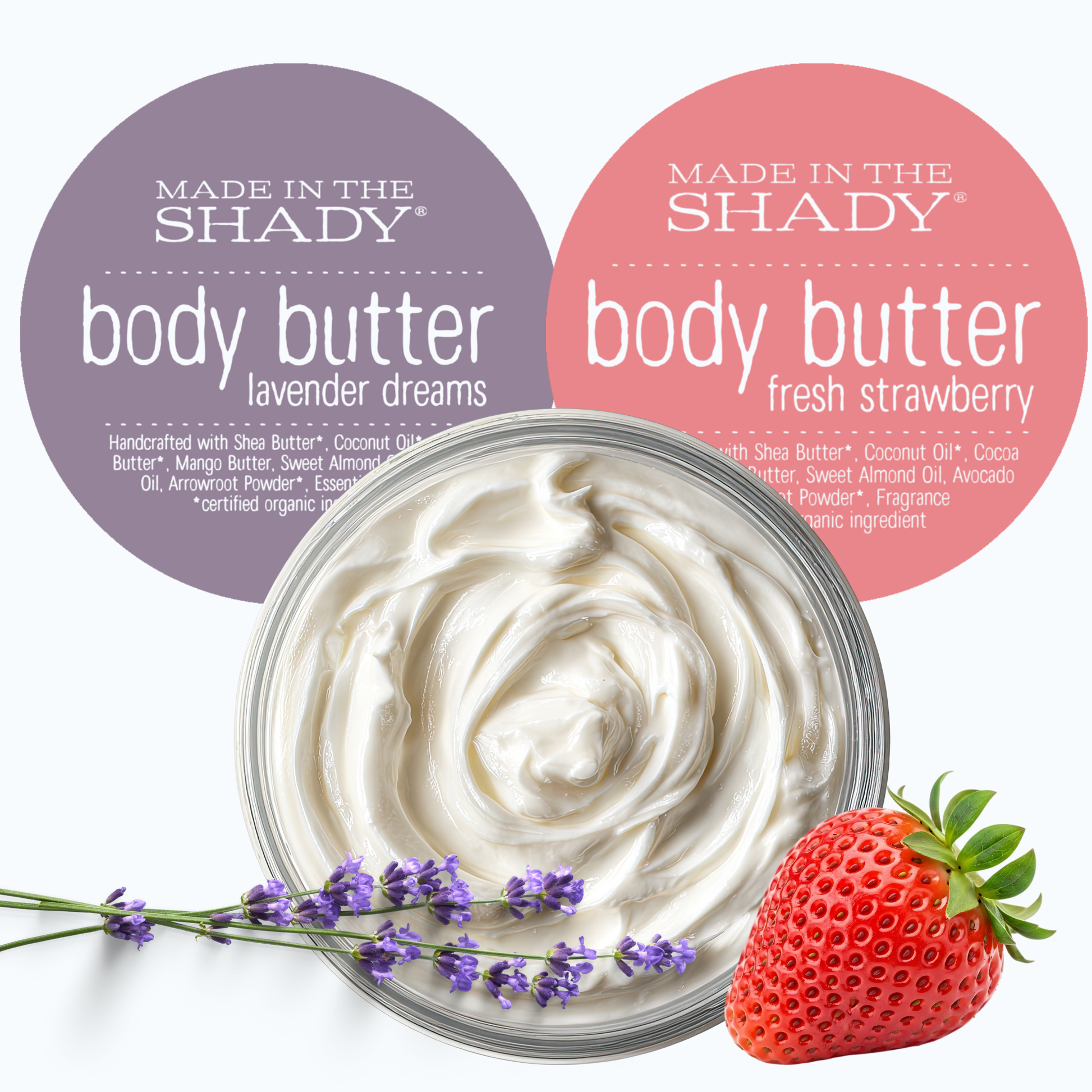 BODY BUTTER Fresh Strawberry(8oz)Handcrafted with Shea Butter*, Coconut Oil*, Cocoa Butter*, Mango Butter, Sweet Almond Oil, Avocado Oil, Arrowroot Powder*, Natural Fragrance